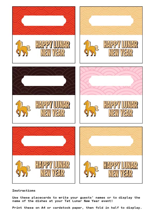 Click on each image above to open up in .pdf format. Download and print to decorate for your Tet Lunar New Year event!